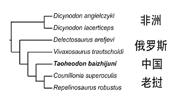 图2:系统发育简图显示核心二齿兽类一支的关系(刘俊 供图)