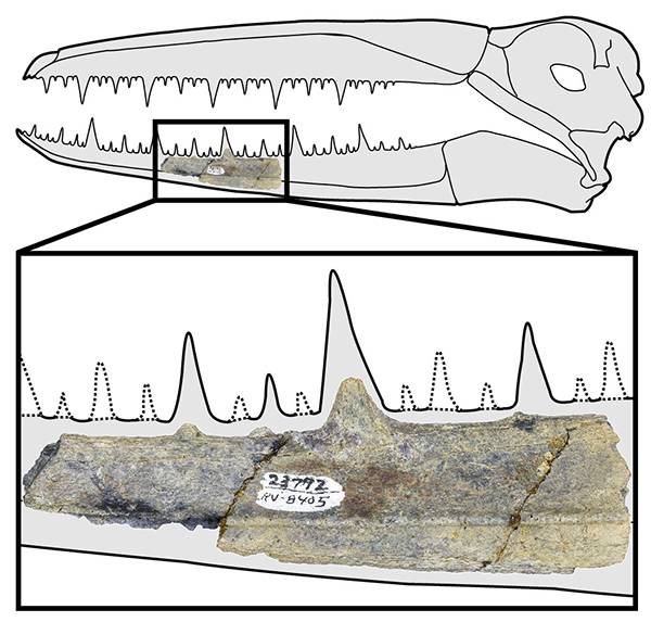20201026日,美国加利福尼亚大学伯克利分校和中国科学院古脊椎动物与古人类研究所的科学家在《科学报告》(Scientific Reports)上发表了对发现于南极洲西摩岛的伪齿鸟化石的研究该化石或许为有史以来能够飞行的最大鸟类。目前该化石保存加州大学古生物博物馆,为一长约12 cm的破碎的下颚。值得关注的是,下颚上保留的骨质“牙齿”在该伪齿鸟活着的时候或许长达3 cm,而这一破碎的下颚可能源自一长达60 cm的头骨。通过对这些“牙齿”的大小和间距的测量,以及与其他伪齿鸟化石的分析比较,该个体体型大于或近似于目前已知的最大伪齿鸟标本作者结合岛上另一个化石地点产出的跗跖骨化石推测,以化石为代表的已灭绝物种的翼展在56米之间。