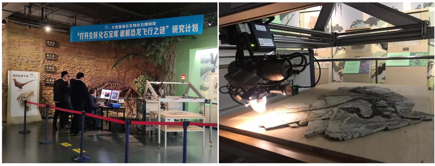 图3. 滕氏嘉年华龙微聚焦X 射线荧光光谱扫描研究现场(大连星海古生物化石博物馆)