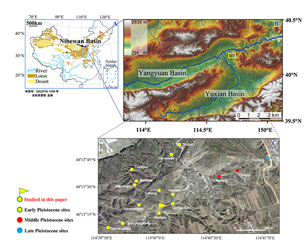 更新世古人类活动遗址的古环境和古生态重建,是理解人类演化和行为适应性的重要基础。中国北方的泥河湾盆地以密集分布百万年前古人类活动遗址为学术界所关注,被誉为“东方的奥杜威峡谷”和“东方人类故乡”。然而,在中更新世气候转型期气候变率增大的大环境背景下,泥河湾盆地内不同古人类活动遗址的区域环境及古人类技术行为的适应性,尚缺乏系统研究。