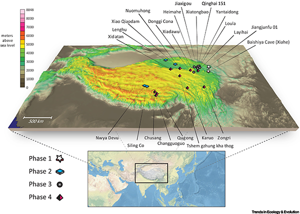 近日,中国科学院古脊椎动物与古人类研究所高星、张晓凌团队与美国加州大学戴维斯分校、加州大学洛杉矶分校以及布朗大学等单位合作完成的关于青藏高原人群演化历史的综述文章 “Denisovans and Homo sapiens on the Tibetan Plateau: dispersals and adaptations”于国际性学术期刊《Trends in Ecology & Evolution》(《Cell》子刊,中科院生物学大类一区)作为封面论文正式发表。