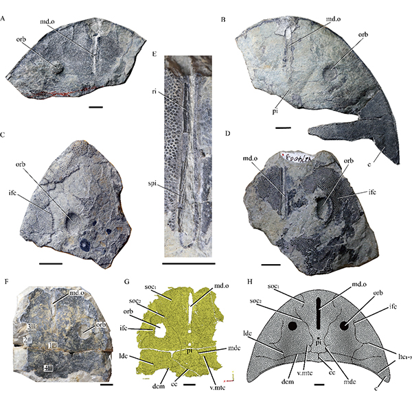 盔甲鱼类的感觉管系统通常表现为两对纵向管和不同数量的横向管组成的网格状,并具有从复杂到简单的进化趋势,但从原始的网格状感觉管系统到后期较为简化的感觉管系统的演化目前尚不是很清楚。西屯鱼(Xitunaspis)的感觉管系统具有原始的和衍生的镶嵌特征,其发现则为盔甲鱼类感觉管系统的演化提供了新的关键证据。