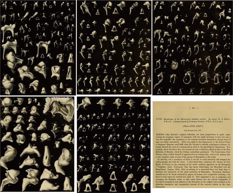 图1. 现生哺乳动物中耳听小骨多样性 (Doran, 1876)
