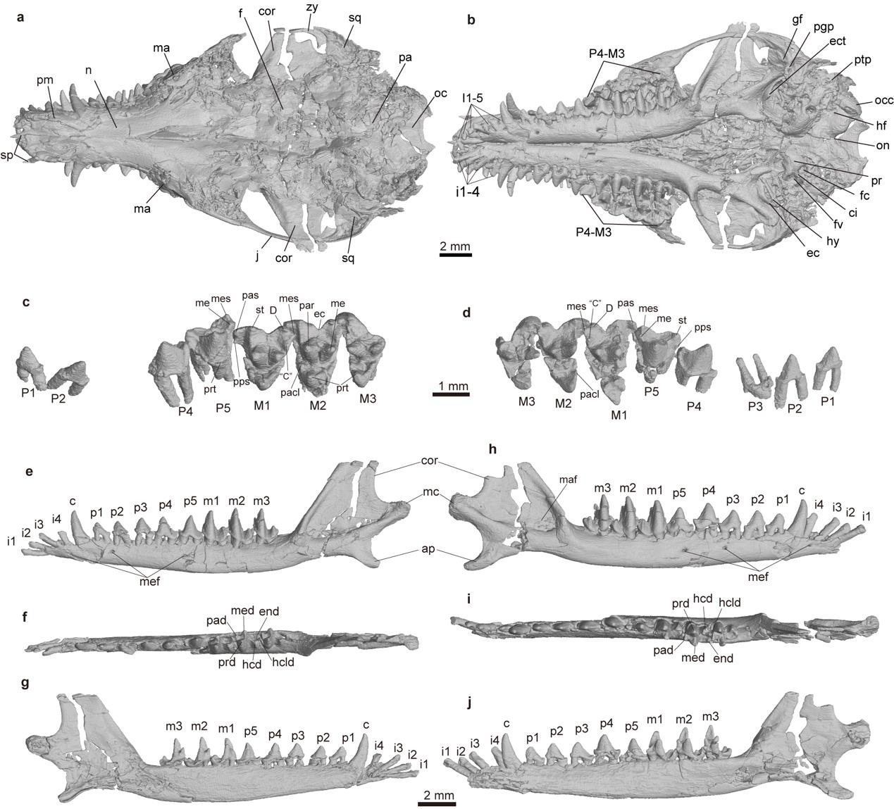 图4. 梦幻小兽头骨和牙齿三维重建形态
