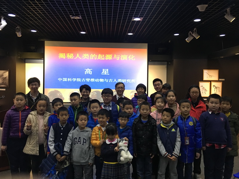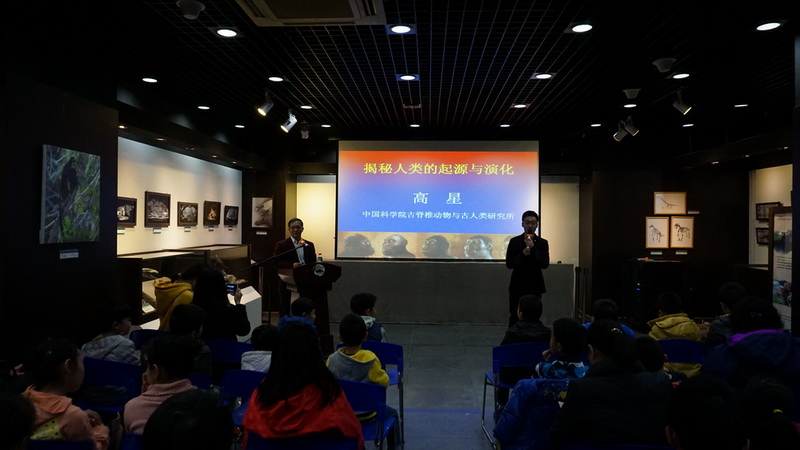 2017年2月26日星期天下午,中国古动物馆达尔文大讲堂·第十期在博物馆东厅举行。主讲嘉宾高星研究员用生动浅显的语言,结合近年来的最新研究成果,为小达尔文俱乐部会员及爱好者等百余名观众讲述了妙趣横生的人类起源与演化故事。本次讲座由腾讯·科普进行了即时网络直播,近万人次同时观看了讲座视频,并与现场直播员进行了互动留言。