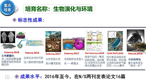中科院古脊椎所与南京古生物研究所牵头的“生物演化与环境”重点培育方向,在院前沿科学与教育局的指导下,扎实推进各项工作,积极推动卓越创新中心筹建和B类先导专项的实施,承担基础科学中心项目等国家重大科技任务,促进学科交叉融合,取得一批重要科技成果,包括在Nature、Science发表论文16篇,在中期评估中被评为优秀。