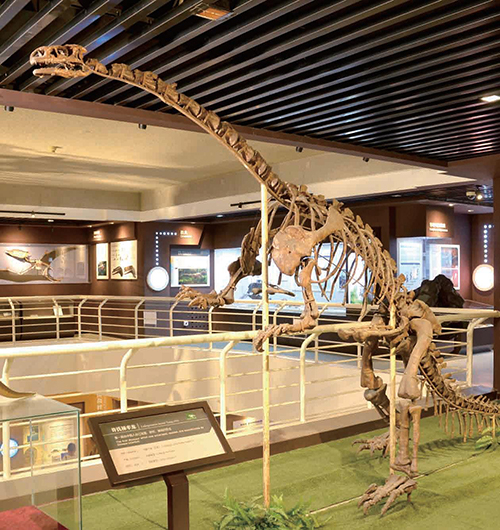 从北京猿人第一个头盖骨珍贵模型,到中国最早的“穿山甲”——东方蕾贫齿兽的化石骨架;从胜利油田地下2000米钻孔岩心中的古鱼化石,到揭示4万年前古人类穿鞋证据的人类脚趾骨;最后是2019年最新的两项成果——卡蛋难产的施氏慈母鸟,以及被称为“恐龙中的蝙蝠侠”的长臂浑元龙。科学课堂展出的全部14件标本都是首次对公众展出。另外69件标本则分散在古动物馆的相关主展厅中,包括“中华第一龙”许氏禄丰龙,炫耀羽毛的胡氏耀龙,以及小巧的古老类人猿阿喀琉斯基猴等等。还有7件标本因为过于巨大(如中华盗龙、化石“九龙壁”等)或过于脆弱(如单指临河盗龙)而不得不以图片形式展出。