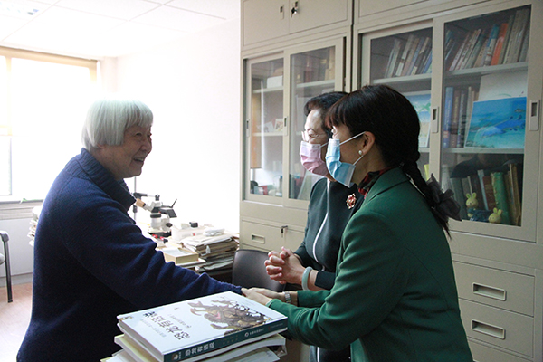 日上午,北京市妇联主席张雅君、北京女科技工作者协会常务副会长李静等一行来到古脊椎所看望张弥曼院士,古脊椎所副所长王秀琴、妇委会主任李茜陪同接待来访。