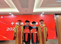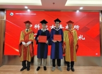 典礼仪式上,周忠和院士和邓涛研究员为毕业生扶正流苏、赠送毕业纪念品。