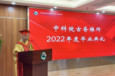 邱占祥院士作为导师代表向毕业生和辛勤付出的导师表示祝贺。在社会稳定、经济发展的新时代,同学们在最宝贵的时间里全身心地投入学习,是古脊椎所珍贵的财富。以学习为主旨的人生阶段即将结束,希望毕业生在新的工作生活中建设严谨扎实的学风,注意积累,为以后的工作奠定坚实基础。过去是埋头苦学,如今更要看看远方。愿在各位同学的努力下,我国古生物学在国际舞台上更有影响力。