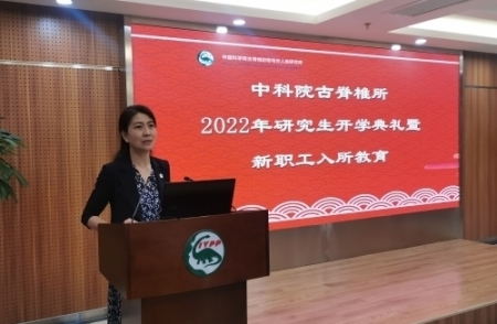 刘光仪书记代表研究所致辞。她首先向所有新同学和新职工表达最热烈的欢迎;作为前一年入所的新职工,她分享了她进入研究所后认识、融入、喜欢上研究所的经历和感受,希望大家能更好地融入研究所、更快地进入状态、更深地参与到研究所的科研工作中,为古生物学、考古学发展做出贡献;并祝福同学们和青年职工在未来的学习工作中展翅高飞,前程似锦。
