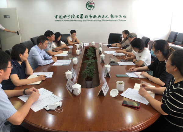 9月7日上午,民盟中央科技委员会主任周元等一行到古脊椎所调研交流。所长、党委书记邓涛,副所长刘俊,以及科技处、财务处、研究生部和党群宣传处负责人陪同调研。座谈会由刘俊主持。