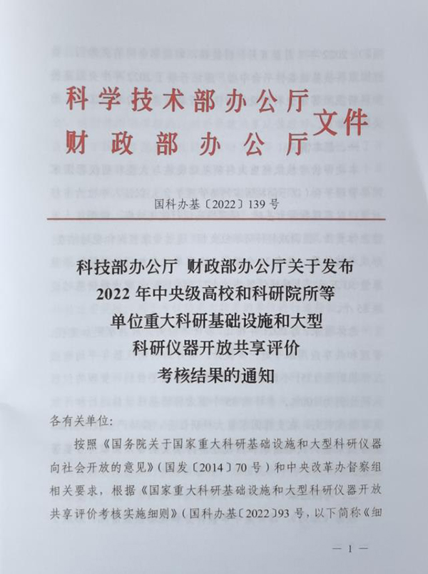 2022年7月至8月,科技部、财政部会同有关部门,委托国家科技基础条件平台中心,组织开展了2022年中央级高校和科研院所等单位科研设施与仪器开放共享评价考核工作,我所公共技术中心获“优秀”成绩。