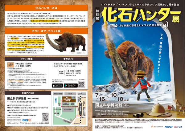 本次特展由日本东京国立科学博物馆、日本经济新闻社与东京BS电视台主办。