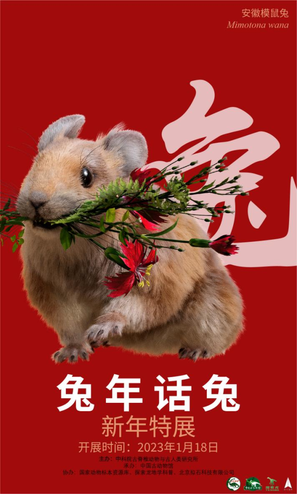 2023年1月18日,由古脊椎所主办、古动物馆承办的“兔年话兔”特展在中国古动物馆西厅开幕。本展览本次展览回顾兔的起源以及演化历程,2023年癸卯兔年对兔“寻根问祖”。