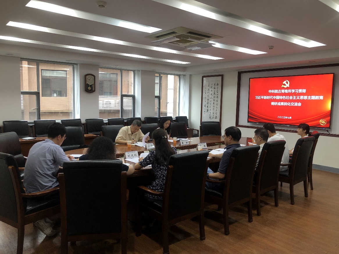 2023年7月13日上午,中国科学院古脊椎动物与古人类研究所(以下简称古脊椎所)党委组织召开学习贯彻习近平新时代中国特色社会主义思想主题教育调研成果转化交流会。院主题教育第八巡回指导组组长孙建国、成员翟昕到会指导。古脊椎所党委书记邓涛主持会议。