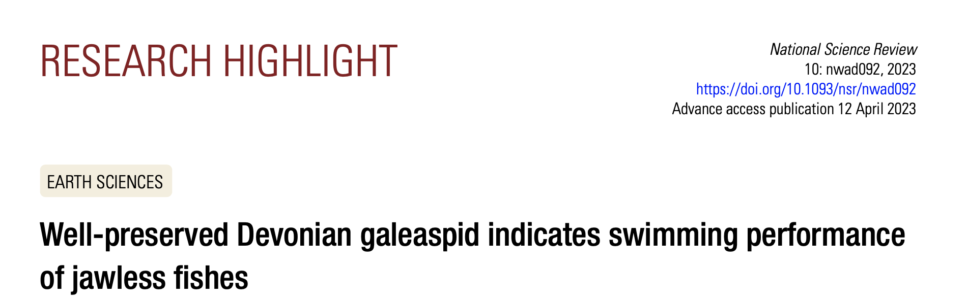 近日,《国家科学评论》第10卷第7期将古脊椎所盖志琨研究员团队主导的九尾狐甲鱼的研究成果选为封面文章,并配发了法国科学院院士Philippe Janvier 亮点评述文章。 2023年3月,研究团队在《国家科学评论》在线报道了在广西早泥盆世古鱼类特异埋藏生物群中发现的首个完整保存尾鳍的盔甲鱼类——九尾狐甲鱼,弥补了重庆动物群灵动土家鱼尾鳍保存不完整的缺憾。