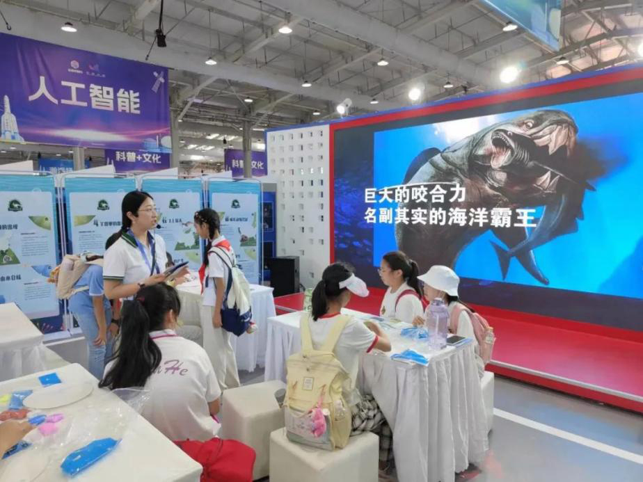 中国古动物馆展区吸引了大批观众参与,观众们认真聆听,跟随老师认识地层知识,了解生命演化。化石展品、展板、科普课程和互动活动拉近公众与古生物的距离,引导公众感受科学的趣味性,激发公众对知识的思考,让更多观众感受到科技的魅力,也最大限度的引发了观众的好奇心,激发观众内心的驱动力,从而点燃科学梦想。