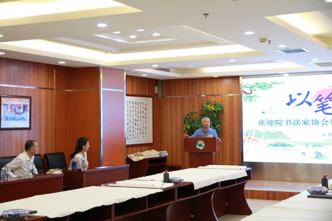 刘光仪首先欢迎院书法家协会领导和会员来到古脊椎所,并介绍了古脊椎所近百年的发展历程以及近年来取得的科研成果。张平介绍了院书法家协会“书法进院所”活动的开展情况和意义。