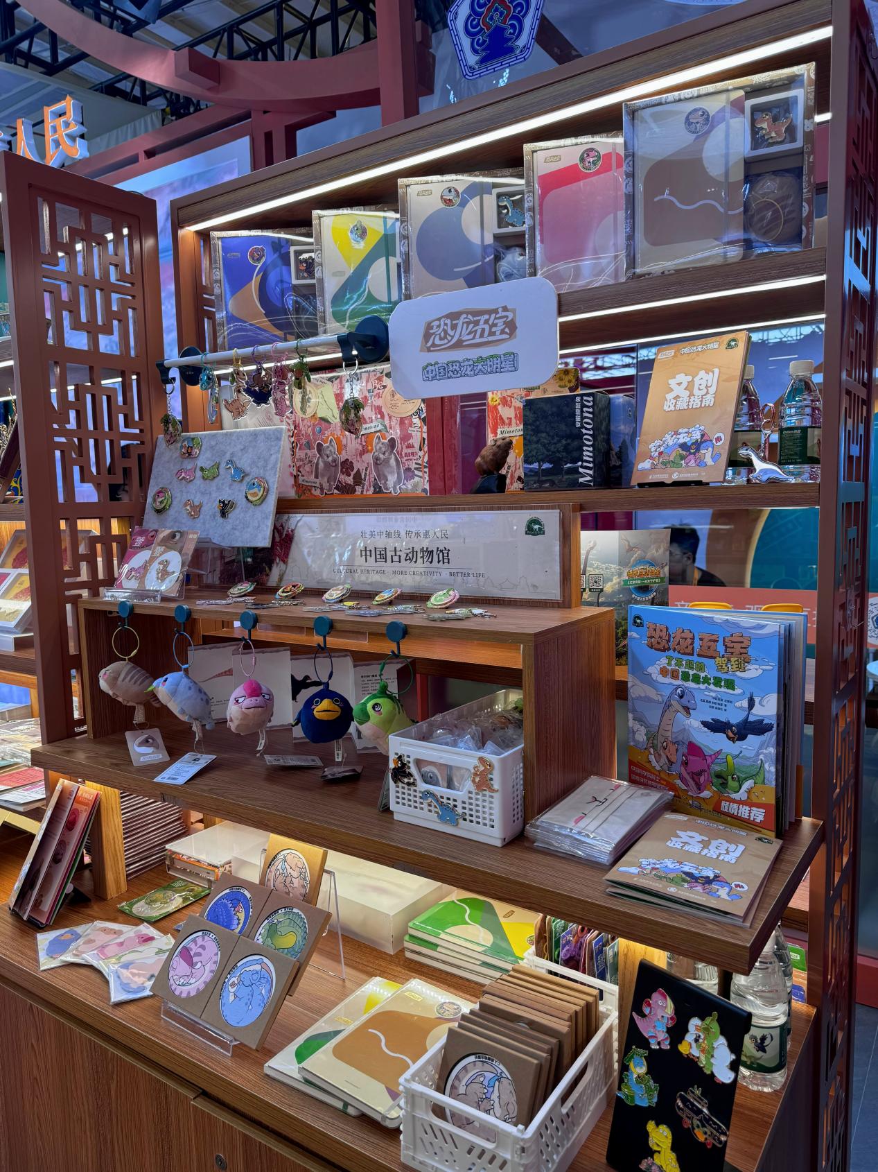中国古动物馆古生物系列文创产品吸引了大批观众和游客前来购买与咨询。恐龙五宝IP主创团队为现场媒体和观众分享了《从科学到市场,恐龙五宝 IP 孵化的全流程探索》讲座,介绍了通过创新手段将科普内容与市场需求相结合,打造具有教育意义和吸引力的多样化科学传播产品的创作经验。
