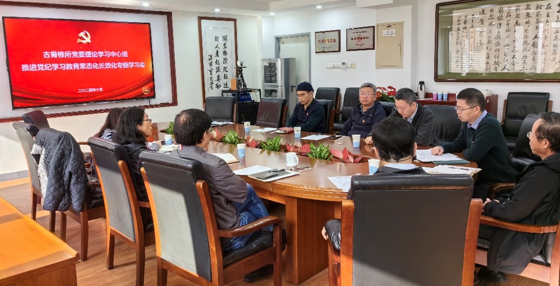 10月29日上午,古脊椎所召开党委理论学习中心组推进党纪学习教育常态化长效化专题学习会。古脊椎所理论学习中心组成员参加会议。党委书记刘俊主持会议。