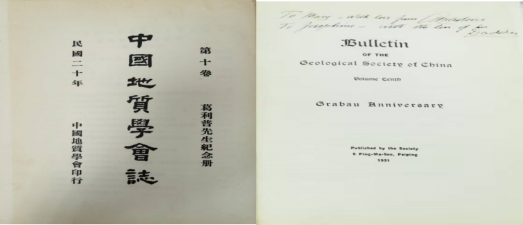 《中国地质学会志 葛利普先生纪念册》,1931年出版,上书葛利普本人亲笔签名