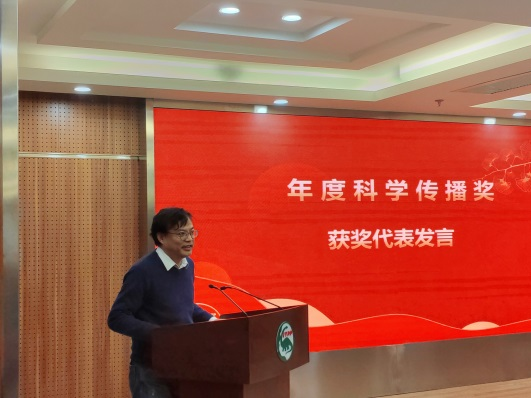 会议表彰了荣获古脊椎所年度科研成果奖、“两优一先”奖、科学传播奖、考核优秀、嘉奖及中国古动物馆荣誉馆长奖励的先进团队和个人,并为获奖代表颁发证书。毛方园、吴飞翔、邓涛、杨石霞、王炜、李士杰、王原分别作为获奖代表发言。