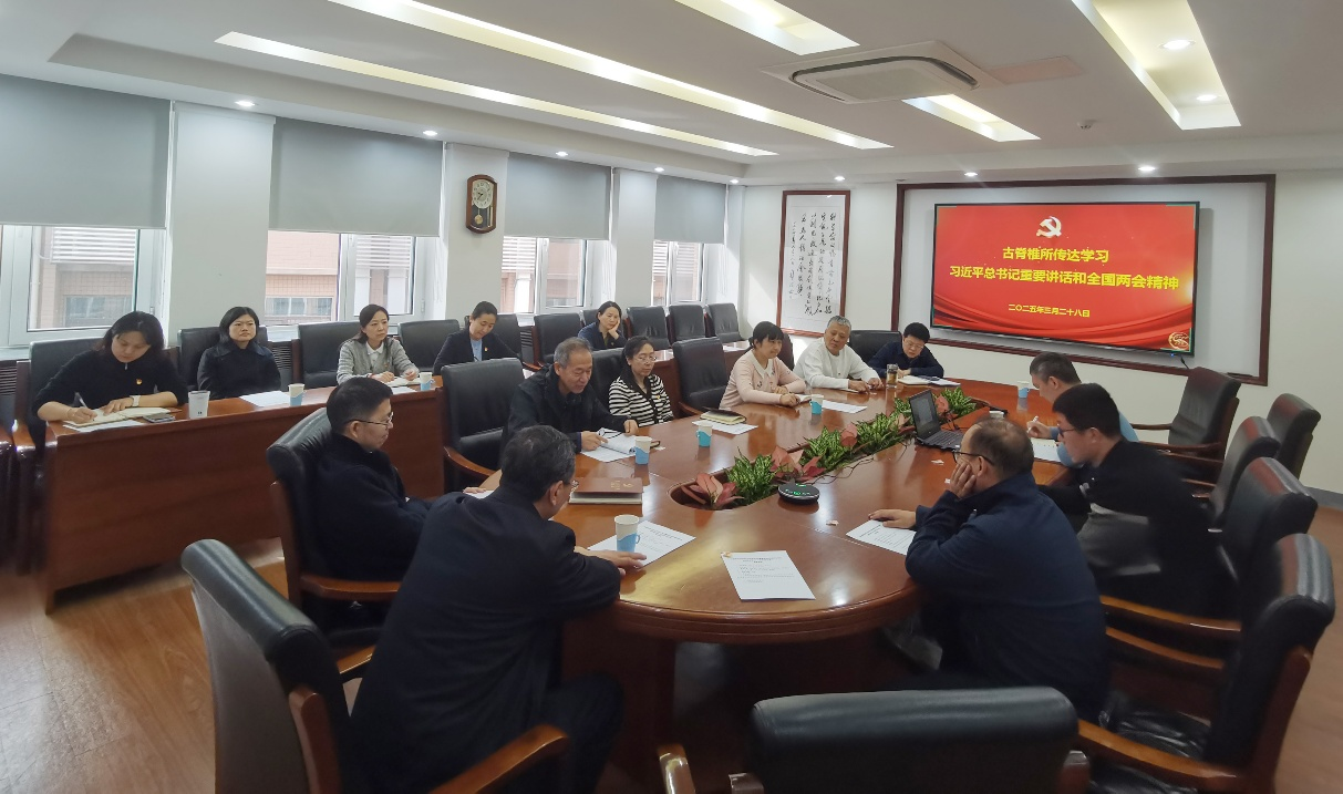 周忠和院士和王元青研究员传达学习了习近平总书记系列重要讲话精神,解读了政府工作报告中科技创新相关内容,分享了提案内容和履职感受。张颖奇研究员结合工作实际,围绕政府工作报告中基础研究相关内容做重点发言。
