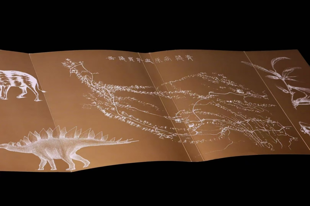 《山海折叠》封面内页的由作者手绘地图与化石点分布(摄影:木春)
