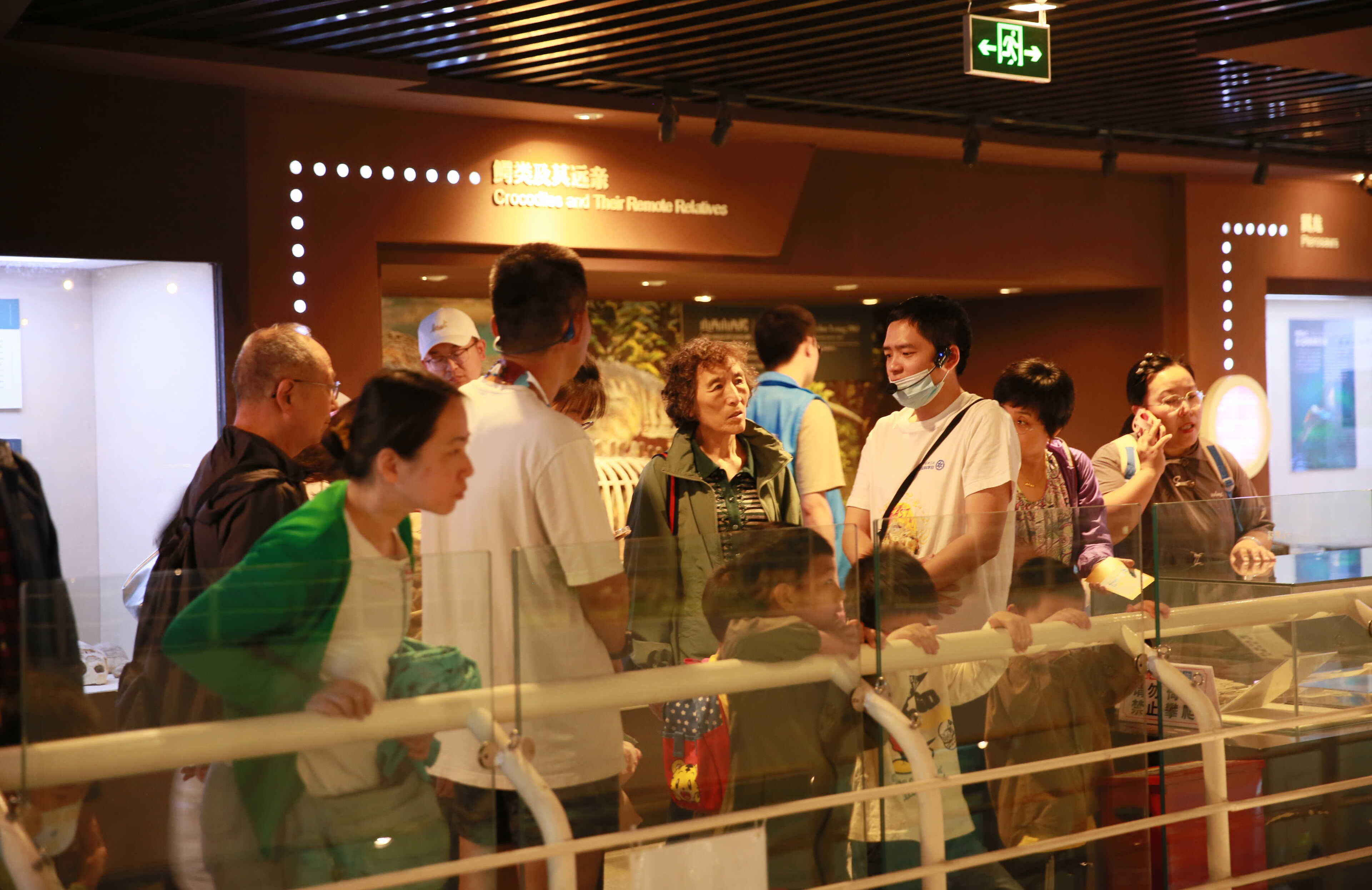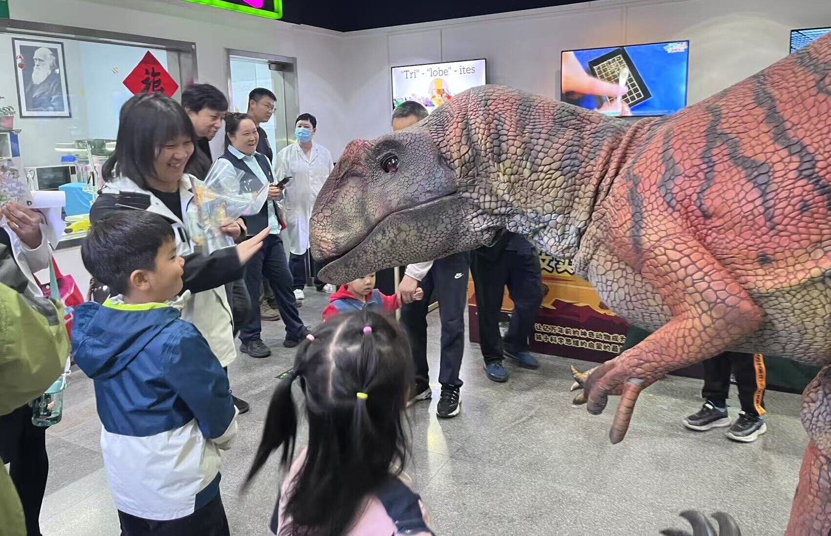 展厅内,“中华猛龙”巡游引发观众惊叹,公益讲解与"小小讲解员"的生动讲解,将"从鱼到人"的演化历程娓娓道来。