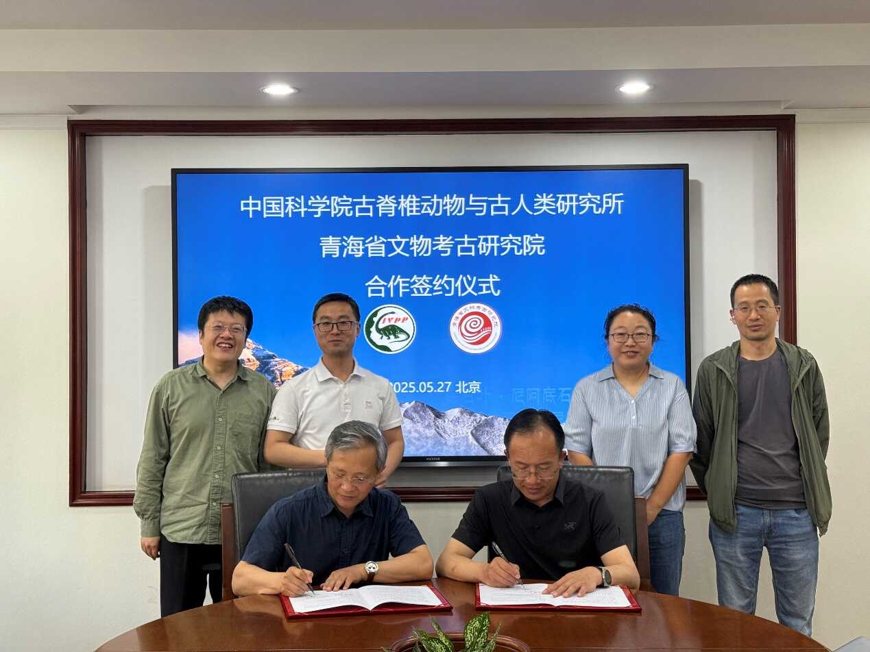 刘俊书记首先对王进先院长一行来访古脊椎所表示热烈欢迎,并表示希望通过合作,共同推进青藏高原人类演化与旧石器时代考古研究工作。高星研究员回顾了青海地区的旧石器时代考古工作以及古脊椎所与青海省文物考古研究院的合作历史,指出了青海地区在旧石器时代考古学研究的重要意义和学术潜力,表达了通过双方合作共同推进青海省旧石器时代考古工作的意愿。王进先院长介绍了青海省考古研究院的基本情况,充分肯定了古脊椎所与青海省考古研究所的合作渊源,希望发挥双方优势,推动青海旧石器考古发展。张晓凌研究员向王进先院长介绍了古脊椎所的发展历史、平台建设、团队建设以及初步的合作思路。双方深入探讨了合作计划内容,就建立学术合作关系,在青海系统开展旧石器时代考古调查、发掘与多学科研究达成合作意向,现场签署了《合作框架协议书》。