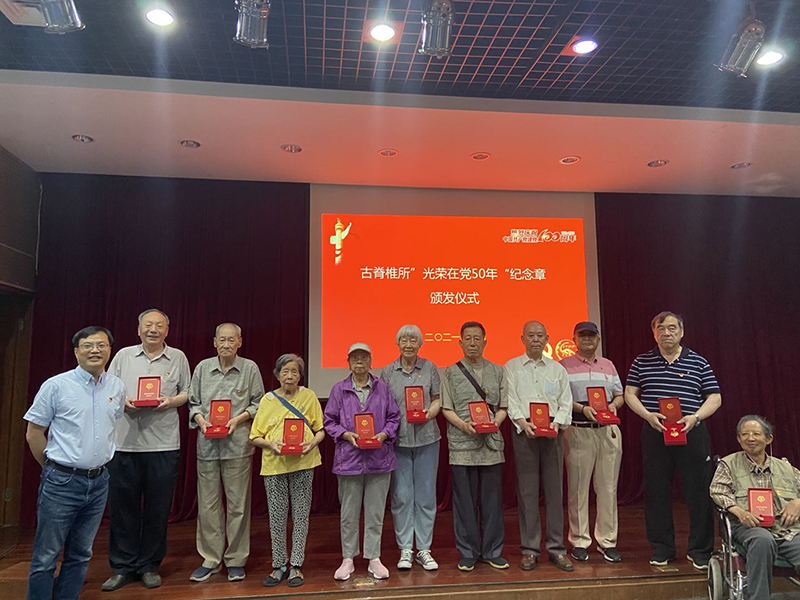 仪式上,张弥曼院士和离休干部刘玉英作为纪念章获得者代表作了交流发言,饱含深情地回顾了入党初心和在党经历,分享了身边优秀共产党员的感人事迹,抒发了对党永远忠诚的坚定信念、为人民服务的使命担当。