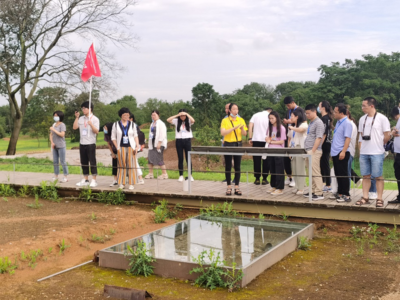 师生们先后参观了历次发掘遗址和正在进行的大型红烧土遗迹发掘现场,观看了凌家滩文化宣传片,深入学习凌家滩遗址考古发掘、学术研究以及国家遗址公园建设情况。在红烧土遗迹考古发掘现场,考古领队张小雷先生介绍了发掘情况;在墓葬祭祀区保护展示工程现场,大家了解历次发现和发掘历程。通过活动,师生们表示将努力学习和工作,深入探索中华文明的起源与发展脉络,更好认识源远流长、博大精深的中华文明,向世界展示中华文明的灿烂成就。