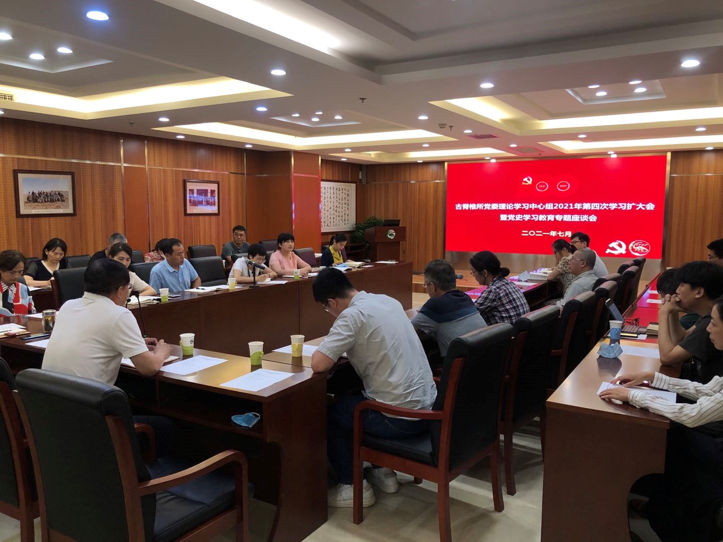 庆祝中国共产党成立100周年大会结束后,古脊椎所党委立即召开党委理论学习中心组2021年第四次学习扩大会,学习习近平总书记在庆祝中国共产党成立100周年大会上的重要讲话精神并交流心得体会。领导班子成员、党委委员、纪委委员、支部书记、中层干部等30余人参加会议,党委书记、所长邓涛主持会议。