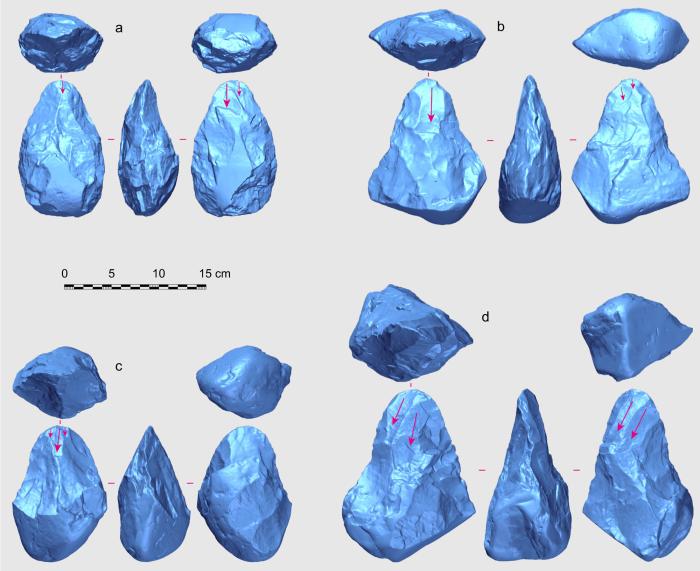 合作团队利用人工制品三维几何形态工具箱等软件,对广西百色盆地发现的手斧等大型工具进行详细的三维几何形态特征分析,进而探讨了百色盆地手斧和手镐工具的类型划分、工具形态与加工技术之间的关联,以及早-中更新世之交中国古人类的技术与认知能力发展等问题。