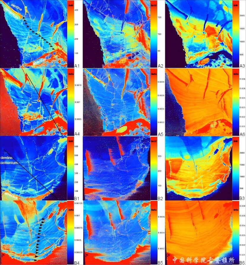 图3 第二下前臼齿齿冠釉质显示元素富集的变化规律