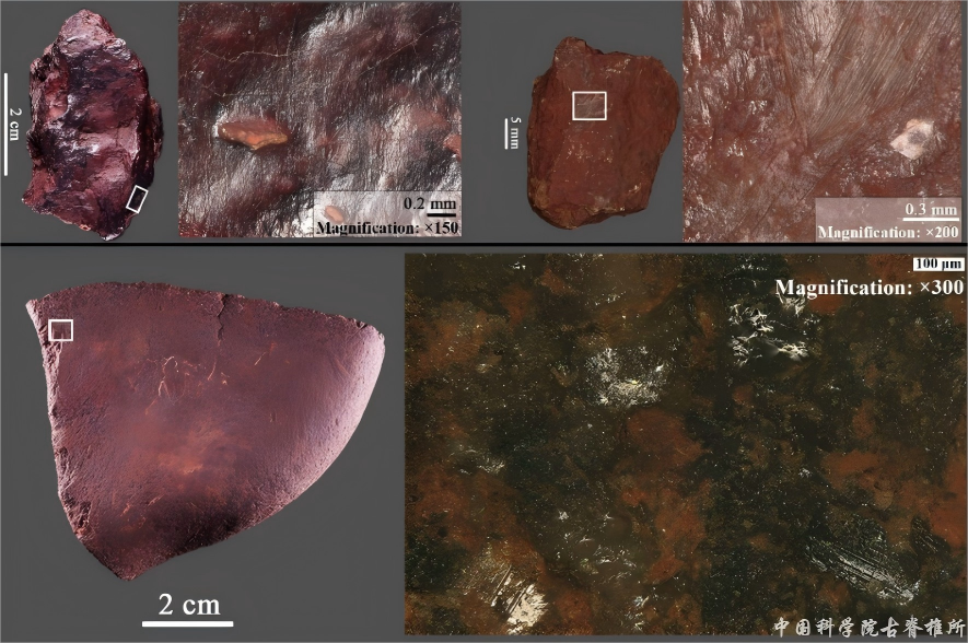 图3 赭石与赭石加工工具表面的人类加工微痕